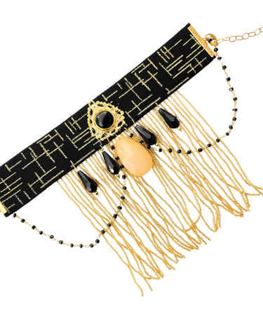 Vezena choker ogrlica. Metalni delovi u 24k pozlati.