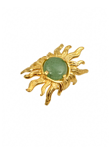 Prsten je izradjen od solidne bronze, u 24k pozlati. Polu drago kamenje Mother of pearl. Dostupan je u kombinaciji sa Aventurinom i plavim Haulitom. Prilagodljivog obima.