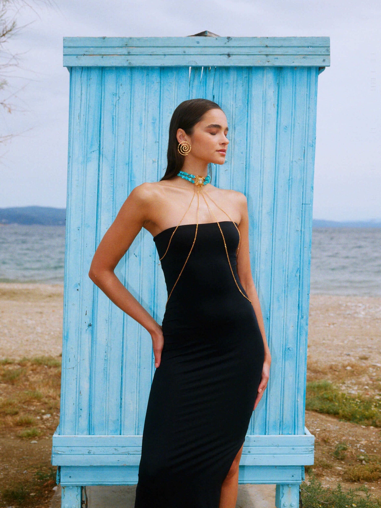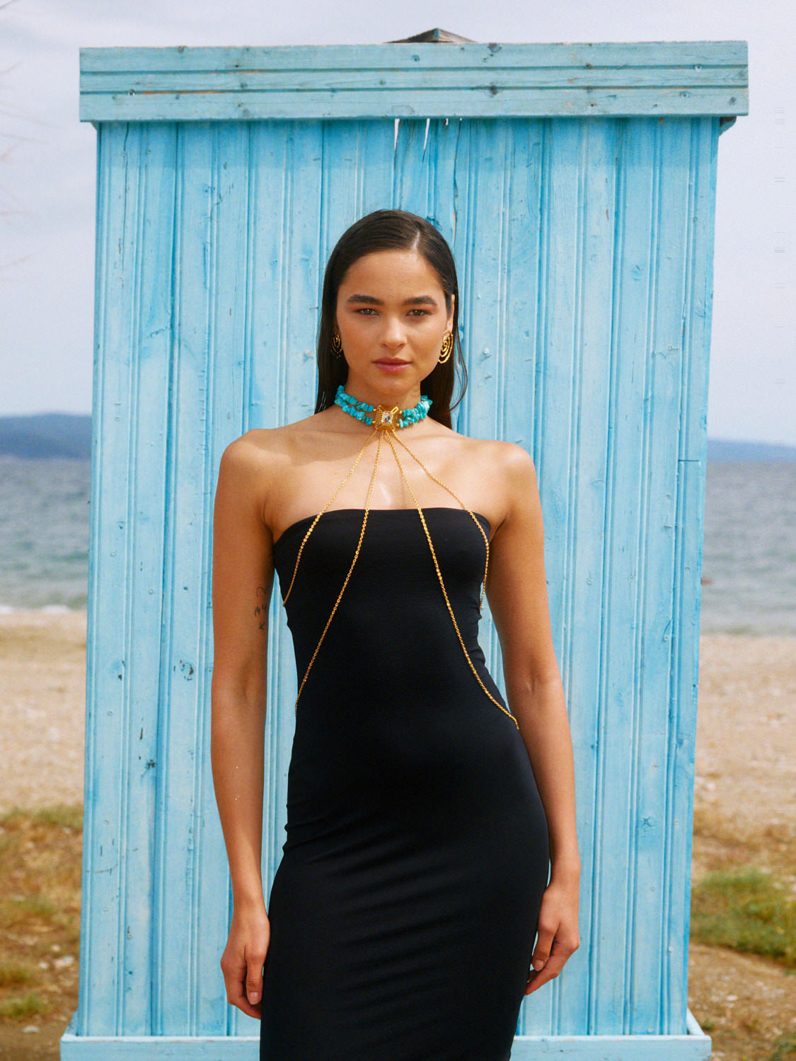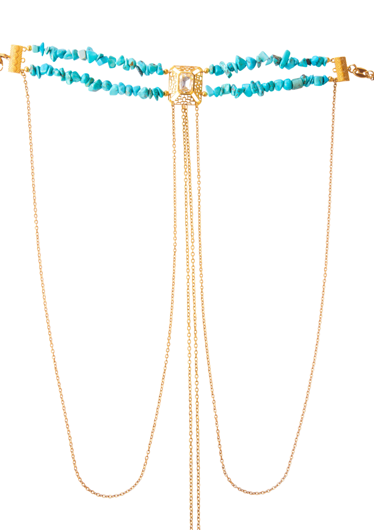 Ogrlica-kaiš izradjena od haulita, preciosa kristal, lanci od nerdjajućeg čelika,