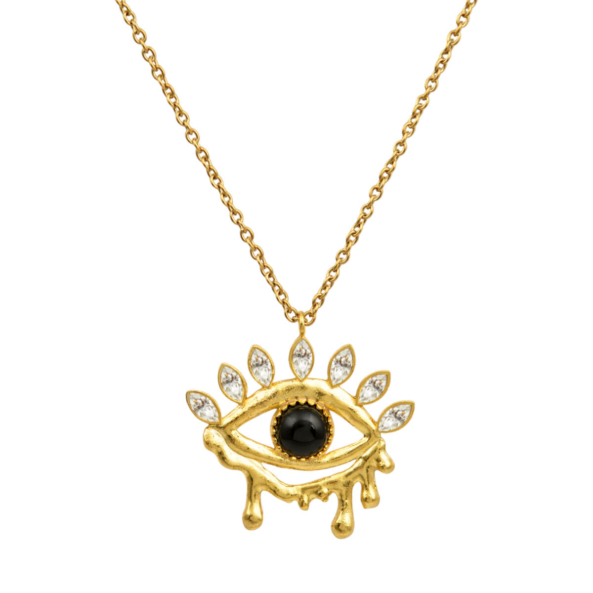 Ogrlica od solidne bronze u 24k pozlati sa crnim ahatom. Ručni rad.