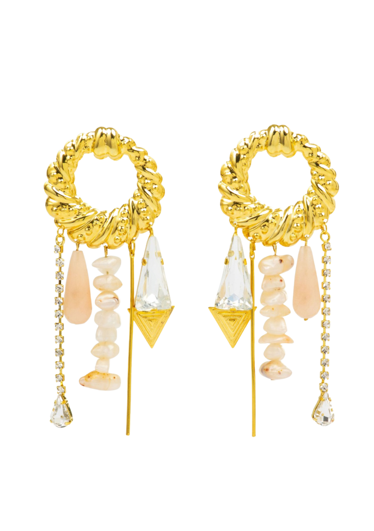 Oro su romantika na prvi pogled. Romantične, ženstvene, nežne, neobične i dugačke! Ručno izradjene od mesinga, obložene 24-karatnim zlatom, sa Ahatom i Preciosa kristalima koji hvataju svetlost dok se krećete dajući Vašem licu sjaj!